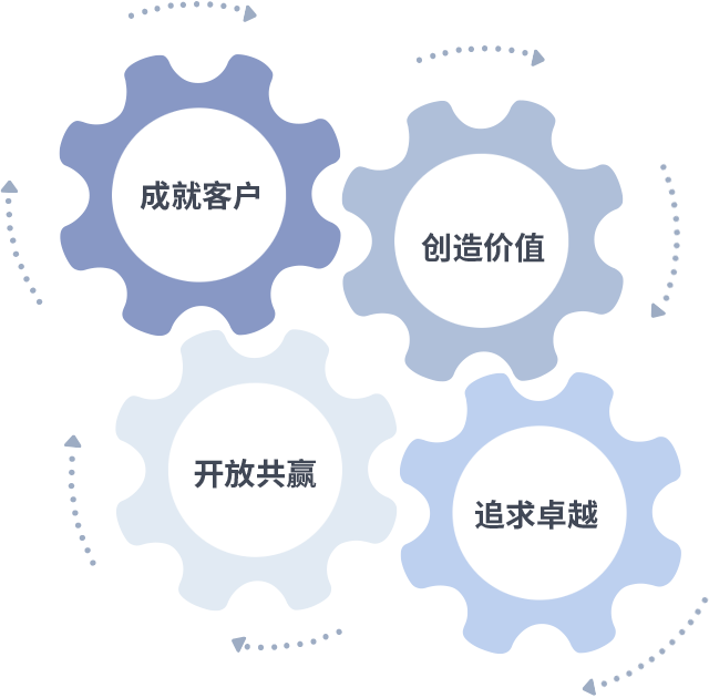 成就客户是一切决策的出发点,创造价值是衡量所有工作的标准,追求卓越是完美真人WM做事做人的态度,开放共赢是完美真人WM的格局也是最终的结果。价值观的齿轮环环相扣,推动着组织里的每个人不断向前。